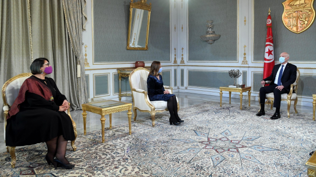 استقبل رئيس الجمهورية قيس سعيد اليوم الثلاثاء 16 فيفري 2021 بقصر قرطاج السيدة راضية الجربي رئيسة الاتحاد الوطني للمرأة التونسية، والسيدة يسرى فراوس رئيسة الجمعية التونسية للنساء الديمقراطيات.