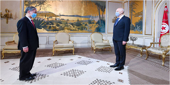 و قد أعرب رئيس الجمهورية بهذه المناسبة للسفير الصيني عن شكر تونس لجمهورية الصين الشعبية على الإعانات التي وجهتها إلى الشعب التونسي خاصة في المدة الأخيرة لمقاومة جائحة كورونا التي عرفها العالم كله.