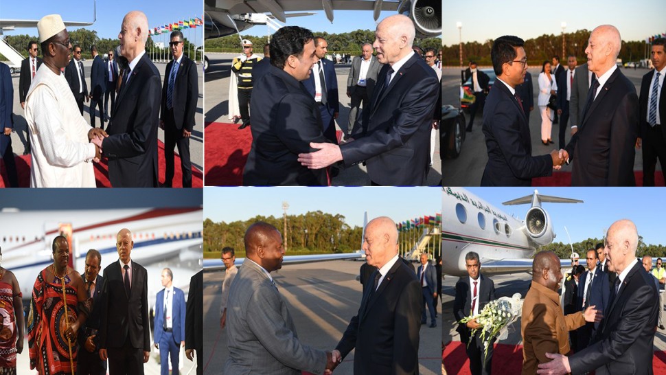 استقبل رئيس الجمهورية قيس سعيد اليوم الجمعة بالمطار الرئاسي الملك مسواتي الثالث ملك اسواتيني وأندريه راجولينا رئيس جمهورية مدغشقر وفوستان أركانج تواديرا رئيس جمهورية إفريقيا الوسطى إضافة إلى ايفاريست اندايشيمي رئيس جمهورية بورندي ومحمد المنفي رئيس المجلس الرئاسي الليبي وماكي سال رئيس جمهورية السنغال وذلك بمناسبة مشاركتهم في الدورة 8 لندوة طوكيو الدولية للتنمية في إفريقيا.