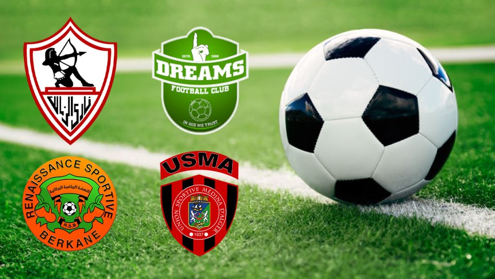 الزمالك ضد دريمز الغاني: تقام مباراة الذهاب يوم الأحد الموافق 21 افريل في مصر، ولقاء العودة في غانا يوم 28 من الشهر ذاته.