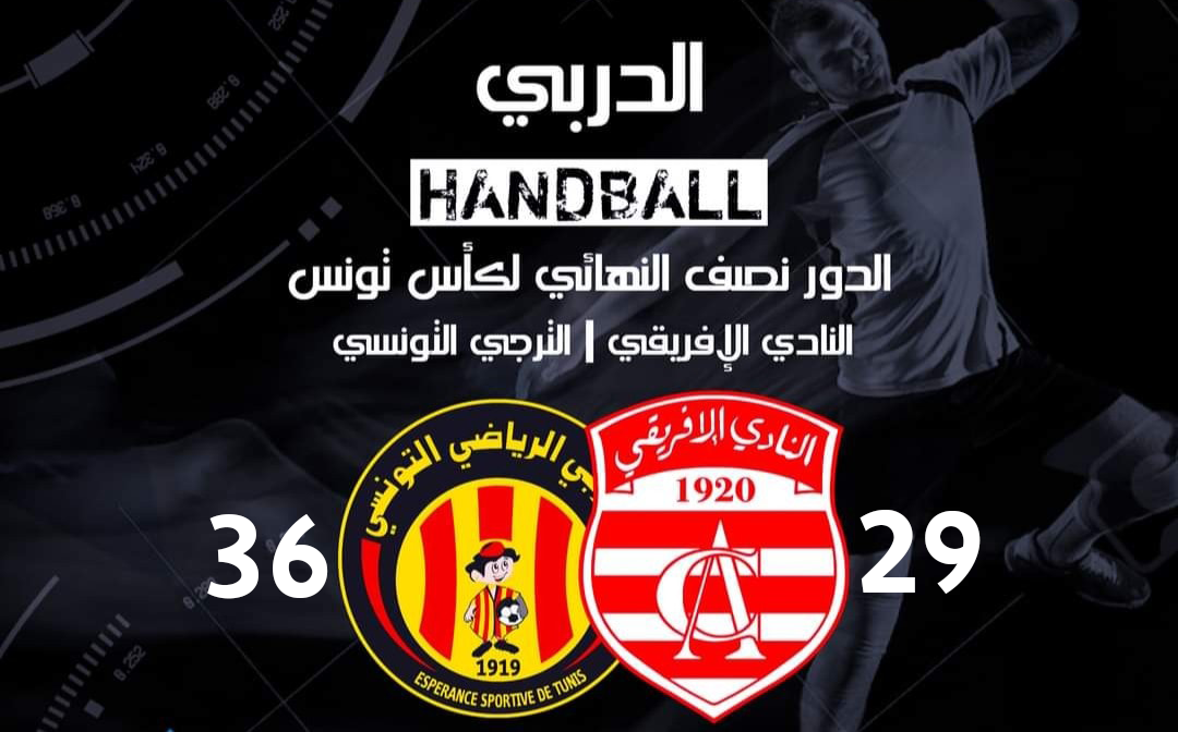 فاز الترجي الرياضي التونسي مساء اليوم الجمعة بقاعة القرجاني على النادي الافريقي بنتيجة 36-29 في مباراة الدور نصف النهائي لكاس تونس لكرة اليد موسم 2020-2021 .