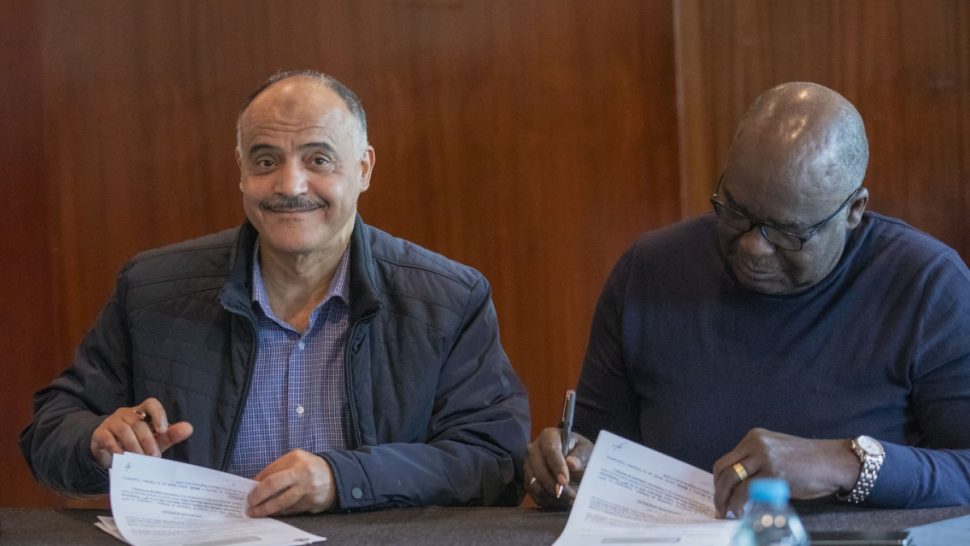 تم صباح اليوم الإثنين 22 جانفي 2024 بالقاهرة إمضاء عقد تنظيم كأس إفريقيا للأمم أواسط وكأس افريقيا للأمم للأصاغر بين رئيس الإتحاد الافريقي لكرة اليد منصورو أريمو ورئيس الجامعة التونسية لكرة اليد كريم الهلالي