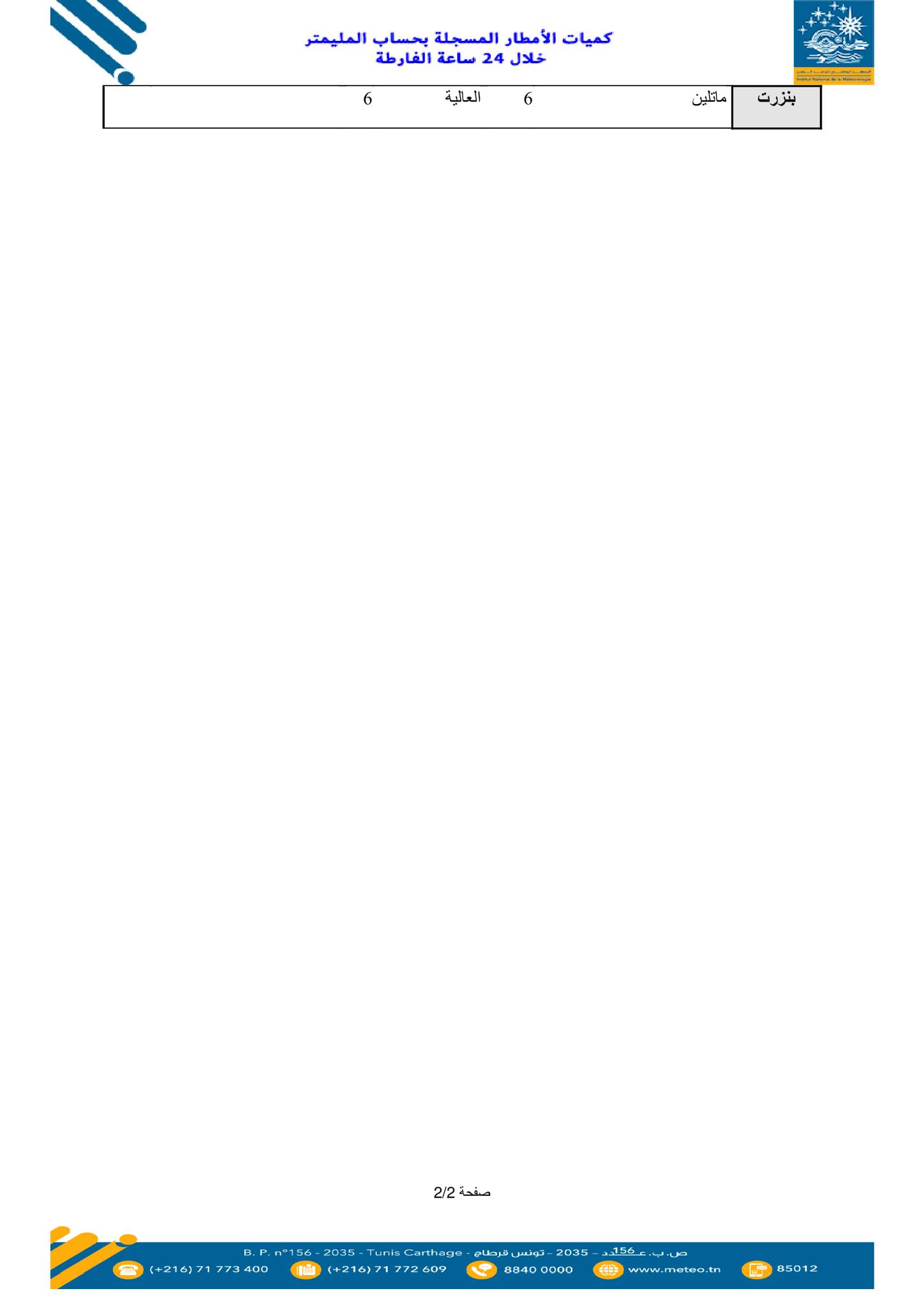 نشر المعهد الوطني للرّصد الجوي، اليوم الأحد 21 ديسمبر 2025، قائمة كميات الأمطار المسجلة بعدد من المناطق خلال الـ 24 ساعة
