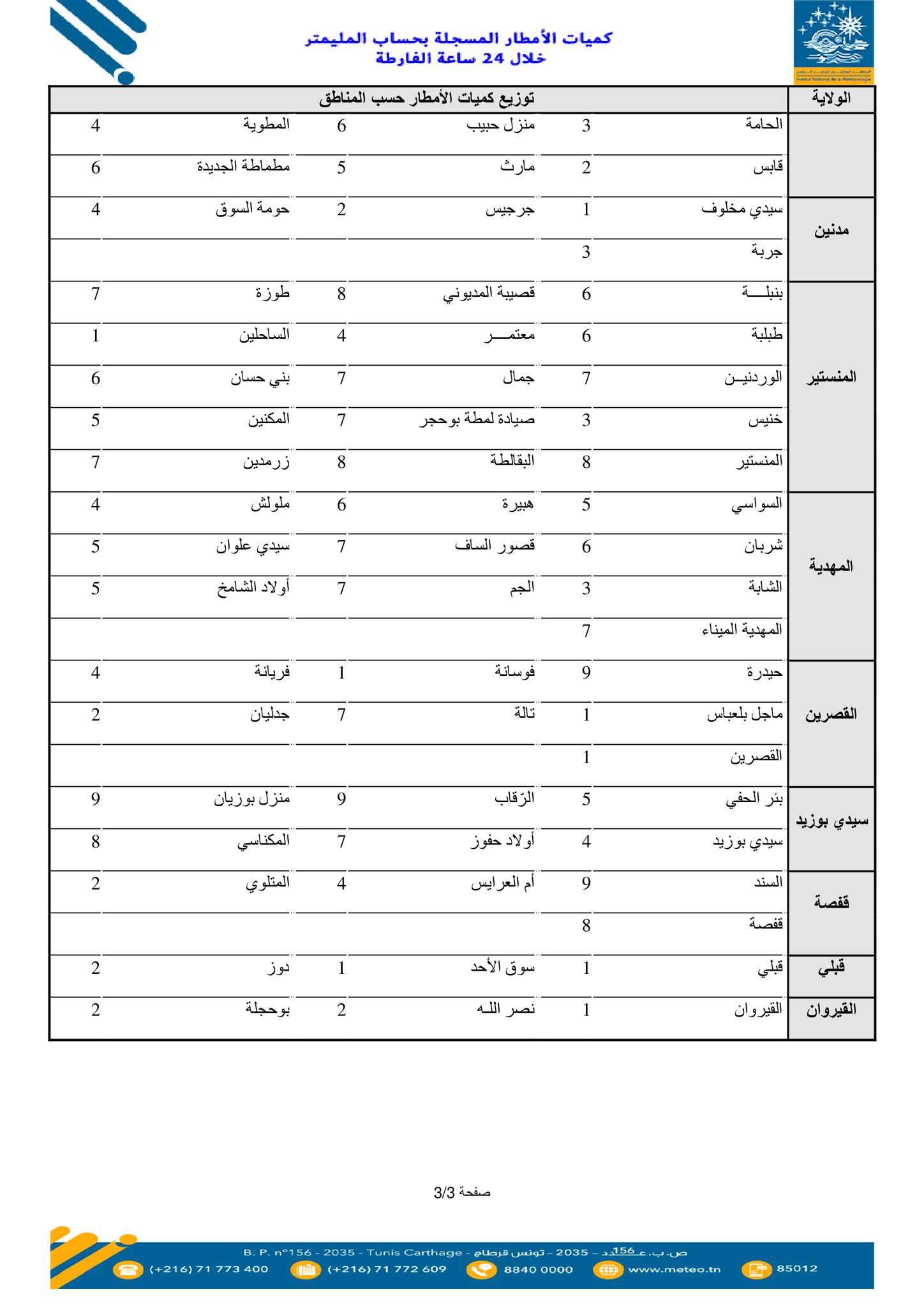 وفي ما يلي قائمة كميات الأمطار