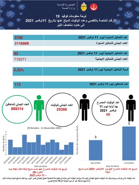 أخبار وطنية كورونا: خمس وفيات و82 إصابة جديدة بتاريخ 11 نوفمبر 2021 By Jfara-Fm Posted on November 13, 2021 0 second read 0 0 427 Share on Facebook Share on Twitter Share on Google+ Share on Reddit Share on Pinterest Share on Linkedin Share on Tumblr