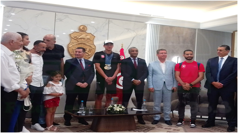 حطت صباح اليوم الثلاثاء 1اوت 2023 بطار تونس قرطاج الدولي الطائرة التي تقل البطل الاولمبي والعالمي أحمد أيوب الحفناوي في رحلة مباشرة قادمة من تركيا عبر رحلة عدد TK661 وذلك بعد مشاركته التاريخية والباهرة في بطولة العالم للسباحة بفوكوياكا اليابانية في استقباله وزير الشباب والرياضة كمال دڨيش ووزير النقل ربيع المجيدي .