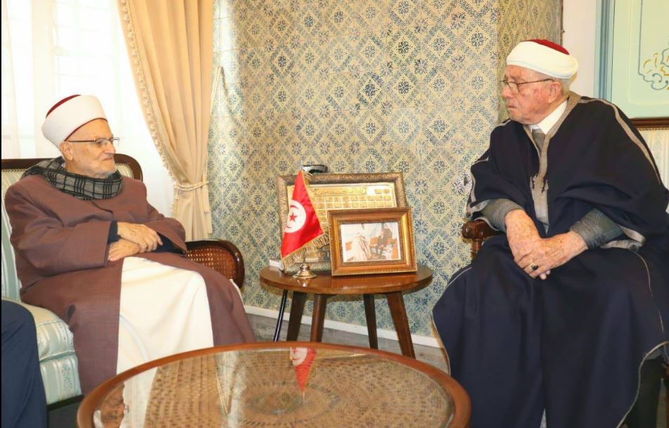 التقى مفتي الجمهورية التونسية هشام بن محمود، بديوان الإفتاء، الإمام الخطيب للمسجد الأقصى المبارك ورئيس الهيئة الإسلامية بالقدس الشريف عكرمة سعيد صبري.