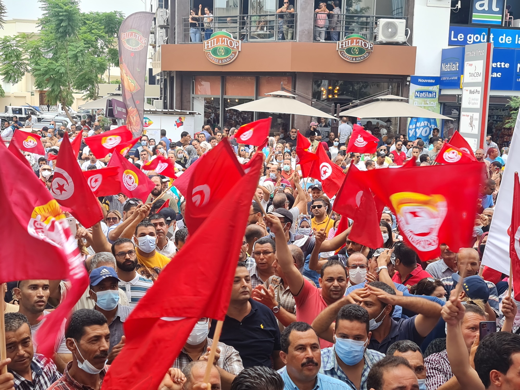 وتجمع صباح اليوم المئات، في وقفة احتجاجية ويوم غضب أمام المقر الاجتماعي للشركة، بضاحية “البحيرة 2”، بدعوة من مجمع اتصالات تونس والاتحاد العام التونسي للشغل .