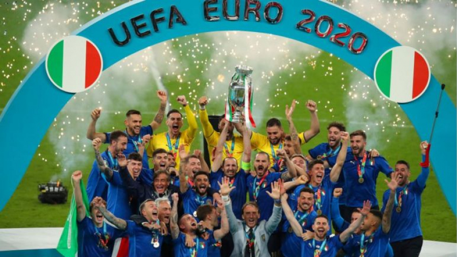 توّج المنتخب الإيطالي لكرة القدم بلقب بطولة كأس الأمم الأوروبية (يورو 2020 ) بعد الفوز على نظيره الإنقليزي 3 / 2 بركلات الترجيح الأحد 11 جويلية 2021 على استاد “ويمبلي” بالعاصمة البريطانية لندن في المباراة النهائية بعد انتهاء كل من الوقتين الأصلي والإضافي بالتعادل 1 / 1 .