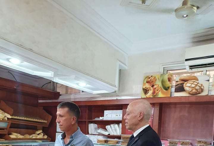 تداول رواد مواقع التواصل الإجتماعي صورا لرئيس الجمهورية قيس سعيّد خلال قيامه اليوم الجمعة 21 أوت 2020 باقتناء ”باڨات” من أحد المخابز بمنطقة النصر من ولاية أريانة.
