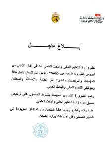 اصدرت وزاراة التعليم العالي بلاغا عتجلا اعلنت فيه تاجيل كل المهمات و التربصات