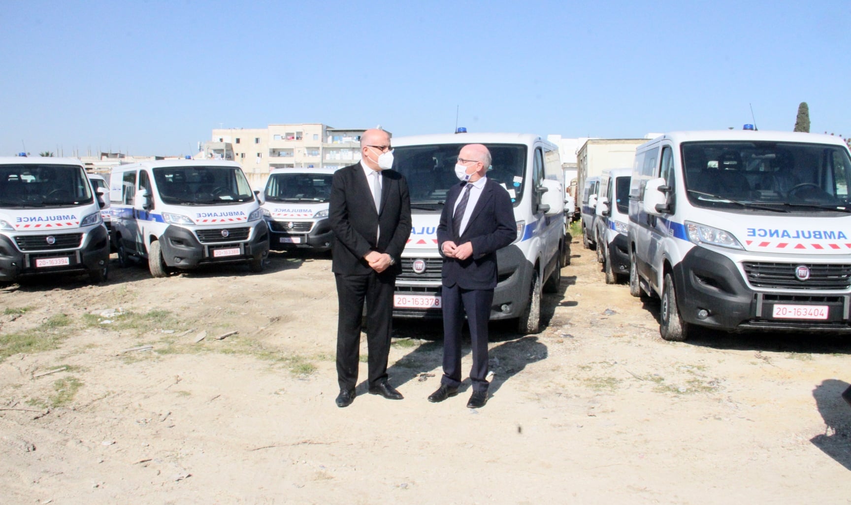 انتظم صباح اليوم الجمعة 26 مارس 2021 بإشراف وزير الصحّة الدّكتور فوزي مهدي وسفير الاتّحاد الأوروبي بتونس السيّد ماركوس كورنارو (Marcus Cornaro) ، موكب تسلّم دفعة جديدة من سيّارات الإسعاف الطبّي المجهّزة وسيّارات رباعيّة الدّفع إلى جانب شحنة من المعدّات والمستلزمات الطبيّة المتطوّرة، وذلك في إطار برنامج “الصحّة عزيزة” المموّل من الاتّحاد الأوروبي لدعم الخدمات الصحيّة بالخطّ الأوّل بـ 13 ولاية ذات الأولويّة.