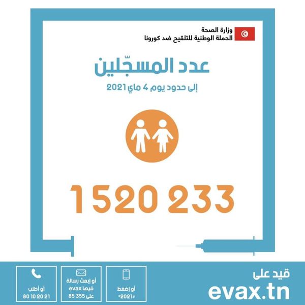 ‏‏‏‏‏وتجدّد وزارة الصحة دعوتها كافة المواطنات والمواطنين الراغبين في تلقّي التلاقيح المضادّة لفيروس كورونا إلى التسجيل على منظومة evax المخصّصة للغرض وذلك عبر الآليات التالية :
