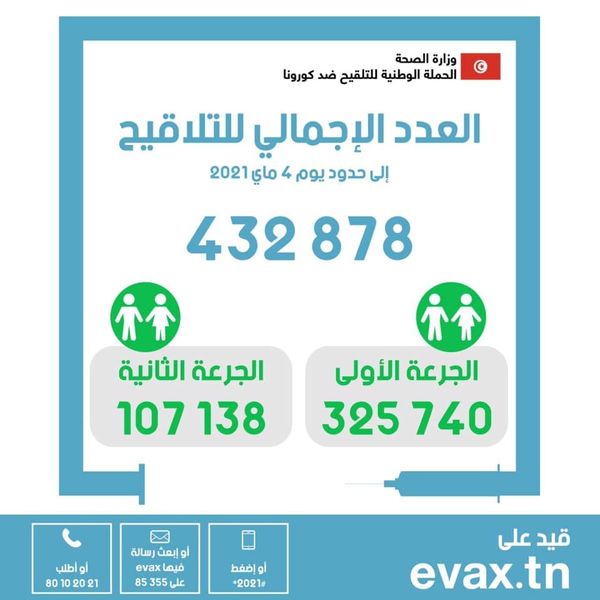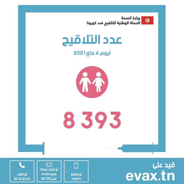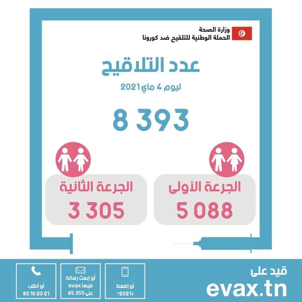 ⏺ عدد التلاقيح ليوم الثلاثاء 03 ماي 2021 : 8393