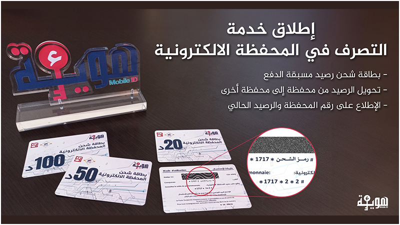 وستمكن هذه الخدمات، التي تمّ تطويرها، التونسيين الذين قاموا بإحداث محفظاتهم الالكترونية بإستعمال هوياتهم الرقمية، من القيام بشحن رصيد محفظتهم بإستعمال بطاقات شحن مسبقة الدفع خاصة بقيمة 10 و20 و50 و 100 دينار يقوم بتوفيرها البريد التونسي بمختلف مكاتب البريد المهيكلة والمتواجدة بكامل تراب الجمهورية بشبابيك خاصة وسوف تعمل الوزارة بالتنسيق مع البريد التونسي وبقية المتدخلين على توسيع هذه شبكة التزويد.