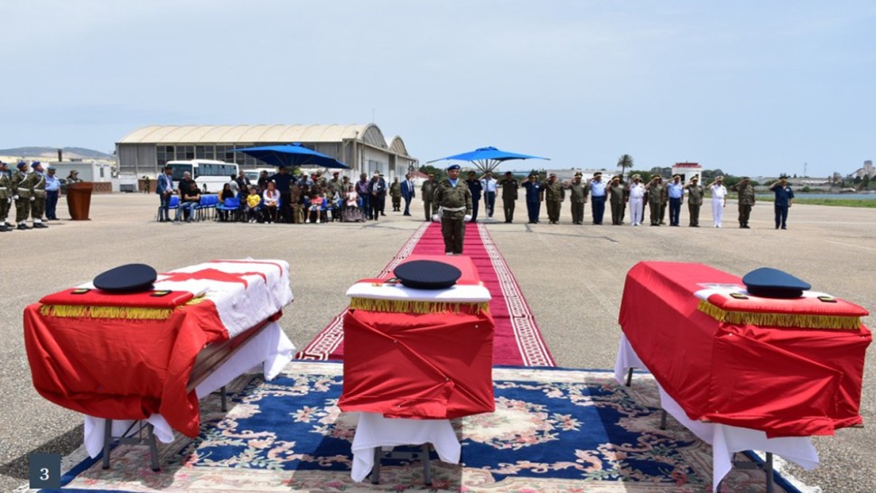 واستحضر وزير الدفاع الوطني، وفق بلاغ أصدرته الوزارة، مناقب فقيدي المؤسسة العسكرية وأثنى على ما تحلّوا به من روح وطنية عالية، مؤكدا حرص المؤسسة العسكرية الثابت على توفير كل الإحاطة اللازمة لفائدة عائلات الشهداء.