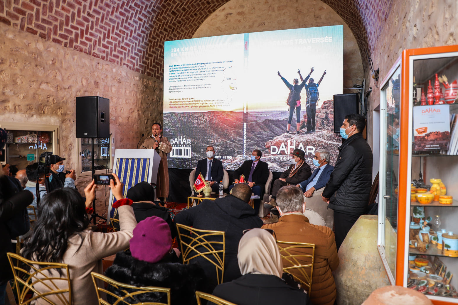 ودشن، بهذه المناسبة، بتمزرط من معتمدية مطماطة، بحضور السلط الجهوية والمحلية يتقدمهم المعتمد الأول المكلف بتسيير ولاية قابس السيد قدور براهمي، المسلك السياحي للمشي لوجهة الظاهر “La Grande Traversée Du Dahar” الذي تم إحداثه في نطاق مشروع وجهة الظاهر للسياحة المستدامة الذي تنجزه جامعة السياحة الأصيلة بالتعاون مع وزارة السياحة والديوان الوطني التونسي للسياحة وعدد من الشركاء الجهويين، وذلك بحضور ممثلين عن المنظمة السويسرية للتعاون الإنمائي الفني (Swisscontact) وعن السفارة السويسرية