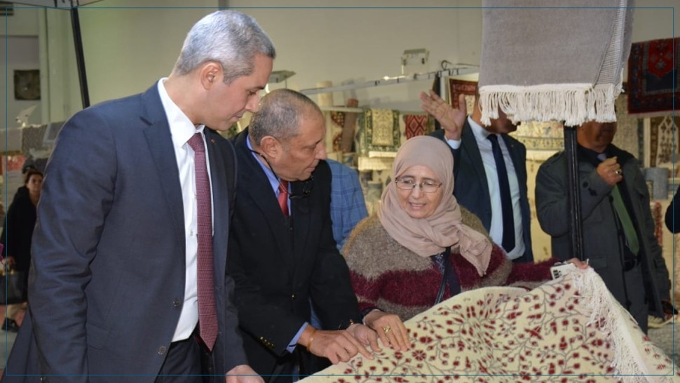 واطلع الوزير على محتويات مختلف أجنحة المعرض الذي يشتمل على اختصاصات حرفية متعددة ومنسوجات مبتكرة على غرار الزربية بمختلف أصنافها والمرقوم والكليم والنسيج الحائطي ومنتوجات من الألياف النباتية والفليج والأقمشة التقليدية كالحايك والحرير وغيرها من المنتوجات التقليدية. كما استمع إلى مشاغل الحرفيين ومقترحاتهم لمزيد النهوض بالقطاع.