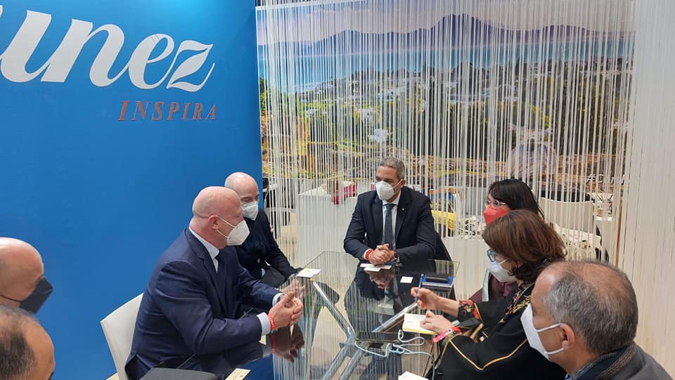ووفق بلاغ لوزارة السياحة فقد استهل بلحسين هذه الزيارة بلقاء رئيس الكنفدرالية الإسبانية لوكالات الأسفار (CEAV) “كارلوس غاريدو” ورئيس ديوان السياحة الإسباني “خوان مولاس” والوفد المرافق لهما. وتناول اللقاء استعراض الوضع السياحي في البلدين في ظل جائحة كورونا وسبل تعزيز التعاون لزيادة عدد السياح الوافدين من اسبانيا. واستعرض وزير السياحة، بالمناسبة، الجهود التي تبذلها تونس لمواجهة انتشار فيروس كورونا وكذلك مدى تقدم الحملة الوطنية للتلقيح مع التأكيد على أن العاملين في القطاع السياحي قد استكملوا جرعات التلقيح الضرورية مع تسليط الضوء على البروتوكول الصحي للسياحة الذي يتم تطبيقه في كافة الوحدات والمنشآت السياحية فضلا عن البروتوكولات التي يتم تطبيقها بالمتاحف والمواقع الأثرية ومناطق العبور وخاصة المطارات وذلك بهدف ضمان سلامة العاملين في القطاع والمواطنين والسياح الأجانب.