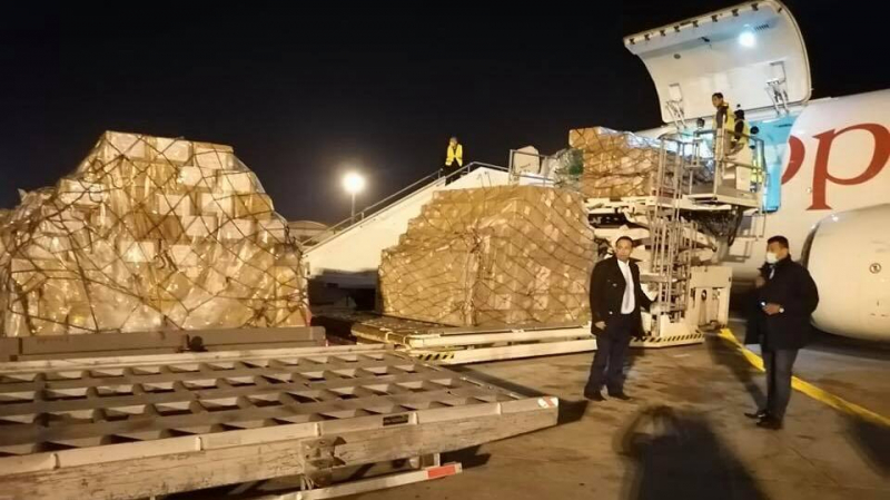 وتتضمن هذه الشحنة القادمة في شكل هبة من الصين ومن منظمة الصحة العالميّة كميّات من أنابيب الفحص والاختبار ومعدّات تحاليل وبدلات طبيّة واقية بالاضافة إلى أجهزة تنفّس إصطناعي وقفازات طبيّة.
