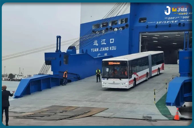 رست منذ قليل  السفينة ‘يوان جيانغ كو’ القادمة من الصين بميناء حلق الوادي، محمّلة بالدفعة الأولى من الحافلات الموجّهة لفائدة الشركات الجهوية للنقل