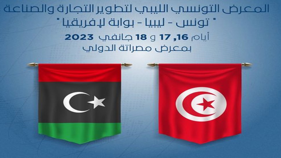 يتحول، اليوم الاحد، وفد تونسي يضم 100 مؤسسة اقتصادية تترأسه وزيرة التجهيز والاسكان، سارّة زعفراني زنزري، للمشاركة في الدورة الاولى للمعرض التونسي الليبي لتطوير الصناعة والتجارة بمصراتة الليبية من 16 الى 18 جانفي 2023