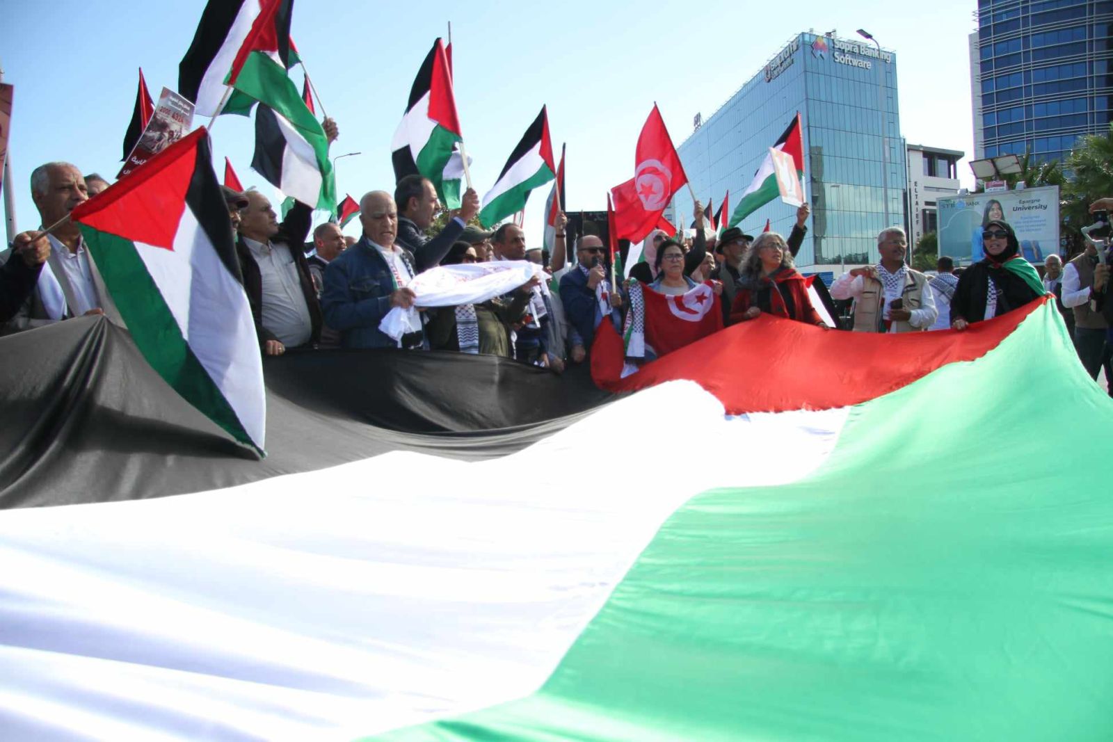 وقفة احتجاجية أمام السفارة الأمريكية بتونس للمطالبة بوقف العدوان على الشعب الفلسطيني