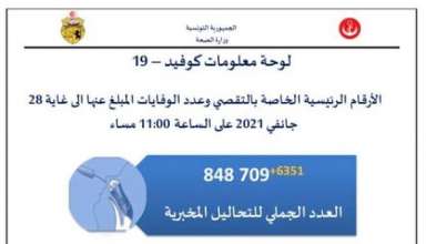 وزارة الصحة: 81 وفاة و1438 إصابة جديدة بفيروس كورونا بتاريخ 29 جانفي الحالي