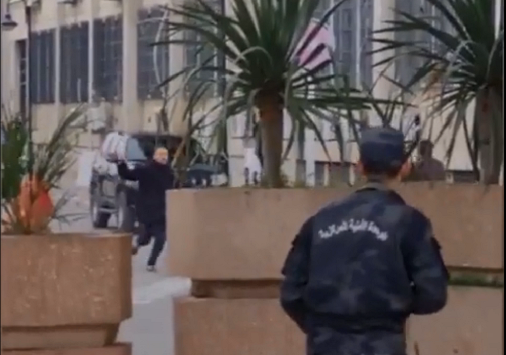أحبطت قوات الأمن اليوم الجمعة هجوما أمام مقر وزارة الداخلية بعد أن تصدوا لشاب كان يحمل سلاحا أبيض (ساطور وسكين)، حاول  طعن والاعتداء على أمني. وقد تم اطلاق الرش على المعتدي على مستوى الساق وسط استنفار أمني. ويشار إلى أن المعلومات تفيد بأن الشاب من موالدي سنة 1990 معروف لدى وزارة الداخلية.