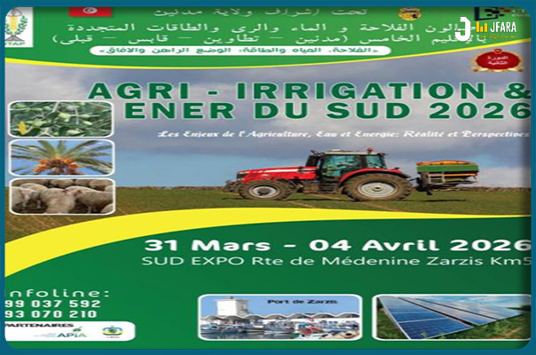 الدورة الثانية لصالون الفلاحة والماء والري والطاقات المتجددة بالاقليم الخامس من 31 مارس الى 4 أفريل 2026 بولاية مدنين