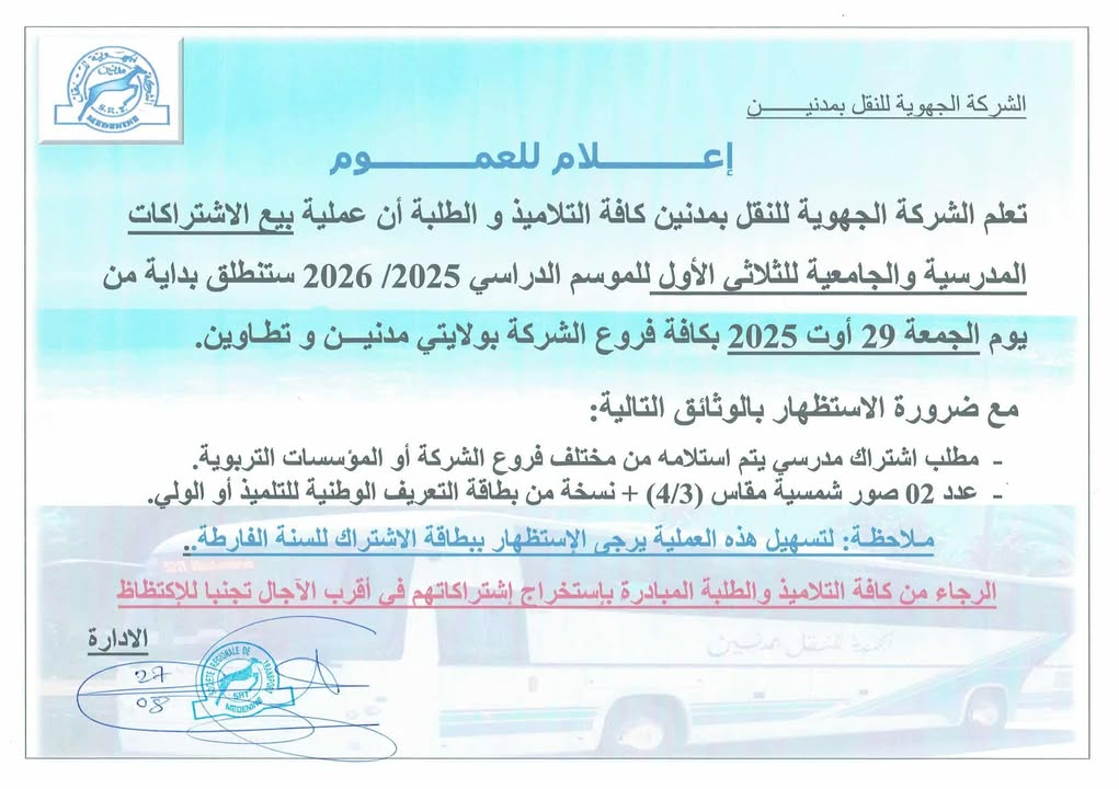 مائة وستون حافلة للشركة الجهوية للنقل بمدنين لتأمين النقل المدرسي والجامعي