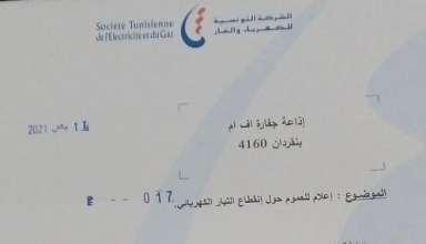 أعلنت الشركة التونسية للكهرباء والغاز، إقليم بنقردان، في بلاغ اليوم الاثنين 11 جانفي 2021 ، عن قطع مبرمج للتيار الكهربائي بمنطقة المعمرات , بنيري , هنشير حواشي بسبب اشغال صيانة الشبكة على خطوطها الكهربائية ، و ذلك يوم الثلاثاء 12 جانفي 2021 ، من الساعة التاسعة صباحا إلى الرابعة مساءا . وسيتم إرجاع التيار الكهربائي قبل الوقت المحدد في حال …