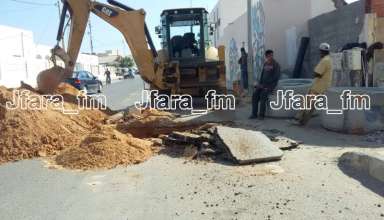 تتواصل اليوم الاثنين 02 نوفمبر 2020 أشغال ربط محلات وسط معتمدية بنقردان بشبكة التطهير العمومي