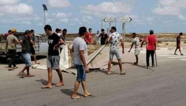 لليوم الرابع على التوالي يتواصل اعتصام أهالي بنقردان على مستوى طريق راس اجدير على خلفية تردي الوضع الاقتصادي و المطالبة بإعادة فتح المعبر للجميع .