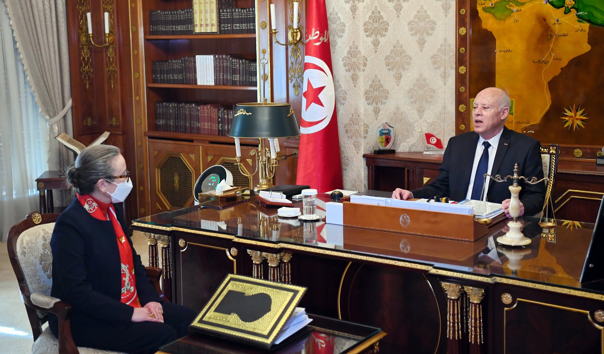 استقبل رئيس الجمهورية قيس سعيّد، اليوم الإثنين 21 فيفري 2022 بقصر قرطاج، السيّد نجلاء بودن رمضان، رئيسة الحكومة. وتناول اللقاء عددا من المواضيع المتعلقة بالأوضاع الاقتصادية والاجتماعية على وجه الخصوص. كما تم التركيز أيضا على التوازنات المالية بوجه عام، وعلى ضرورة إدخال إصلاحات جذرية والتصدّي لسوء التصرّف وإهدار المال العام في إطار تحقيق العدالة الاجتماعية التي ينشدها الشعب التونسي.