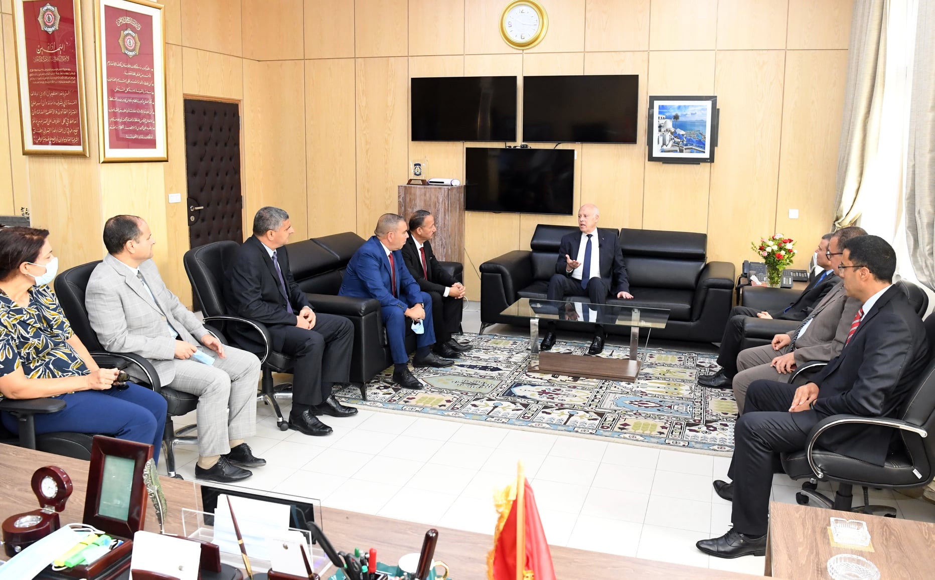 تحوّل رئيس الجمهورية قيس سعيّد، ظهر اليوم الخميس 26 أوت 2021، إلى مقرّ وزارة الداخلية أين التقى بعدد من سامي إطاراتها. وكانت هذه الزيارة فرصة جدّد من خلالها رئيس الدولة التأكيد على ضرورة مزيد بذل الجهد في إطار القانون من أجل محاربة كلّ أنواع الجريمة والتصدي لكلّ من يحاول العبث بالدولة وبمقدراتها.